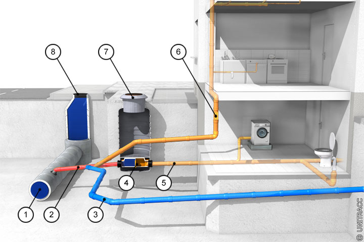 Abhängig von der Höhenlage der Entwässerungsgegenstände im Verhältnis zum öffentlichen Kanal sind grundsätzlich zwei Fälle zu unterscheiden