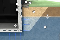 Das unterkellerte Gebäude liegt im Grundwasser: Der Keller ist als wasserdichte Betonwanne auszubilden (Bild 7.1-3).