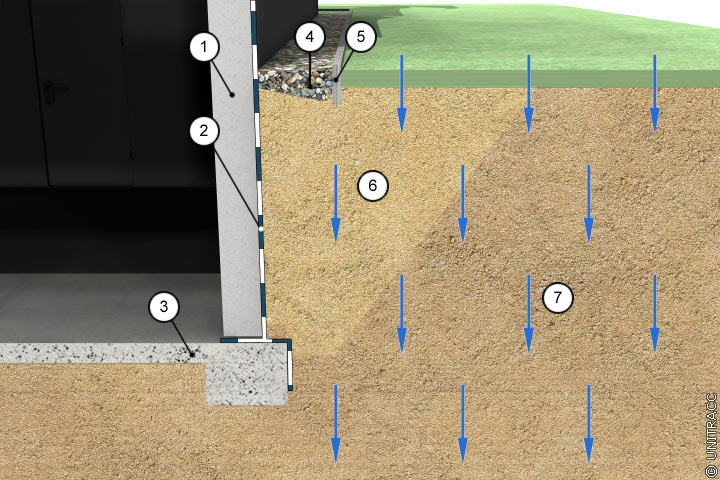 Das Gebäude ist in stark durchlässigem Boden gegründet: Hier ist keine Bauwerksabdichtung oder Dränage erforderlich (Bild 7.1-1).