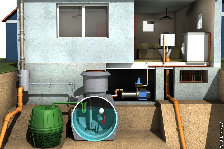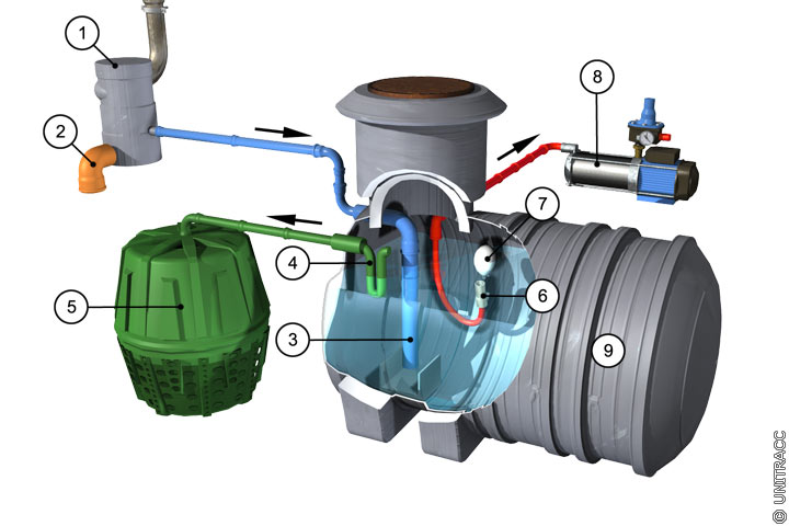 Funktionsbeschreibung: Neben der Speicherung wird eine Nutzungsanlage des Regenwassers installiert