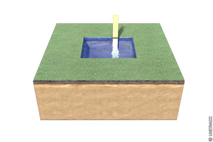 Um sichere Ergebnisse zu bekommen, ist es erforderlich den Untergrund zu wässern. Die Grube sollte ca. 1 Stunde vorgewässert werden und darf während dieser Zeit nicht trocken fallen.