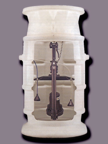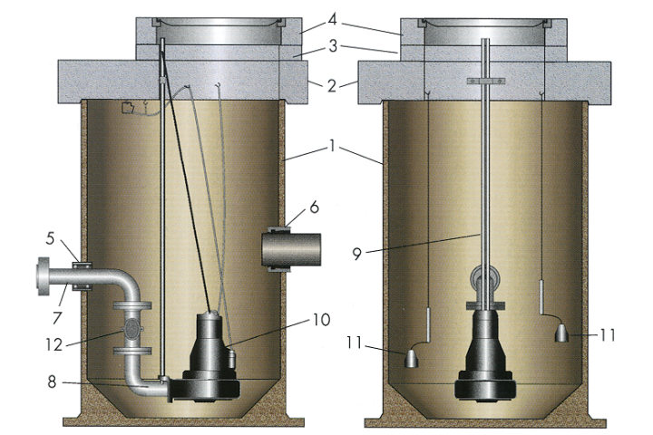 Der Sammelschacht (auch als Pumpstation bezeichnet) kann aus Ortbeton, aus zementgebundenen oder Kunststoff-Fertigteilen hergestellt werden und muss wasserdicht sowie indirekt belüftet sein (Bild 6.2.2.5.3-2) (Bild 6.2.2.5.3-3) (Bild 6.2.2.5.3-4) (Bild 6.2.2.5.3-5). In Abhängigkeit seiner geometrischen Abmessungen ist es unter Umständen möglich, ihn im Zuge der grabenlosen Leitungsverlegung als Start- oder Zielschacht zu nutzen.