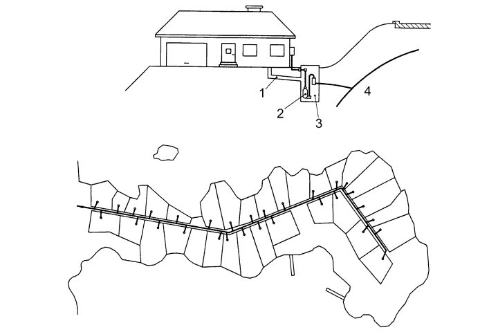 Die Druckleitungen im Sammelraum und im Leitungssystem müssen nach ATV-A 116 [ATVA116] eine Mindestnennweite von DN/ID 65 aufweisen und nach DIN EN 1671 [DINEN1671] für einen Betriebsdruck von mindestens 6 bar ausgelegt werden. Sie werden in der Regel dem Geländeverlauf folgend, fallend und steigend und unter Beachtung von DIN EN 805 [DINEN805] frostfrei verlegt. Hoch- und Tiefpunkte können nach Bedarf angeordnet werden [Overa01].
