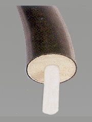 Ein Vertreter dieses Fernwärmerohrsystems ist z.B. das Flexwell-Fernheizkabel® (Bild 6.2.2.4-12) (Tabelle 6.2.2.4-5), dessen Zugfestigkeit bis 25 kN z.B. für Typ FHK 200/310 beträgt. Auf Grund dieser Eigenschaft eignet sich dieses Rohrsystem besonders für die direkte Erdverlegung mit Verfahren des grabenlosen Leitungsbaus nach dem Prinzip des Rohrvortriebes durch Einziehen.