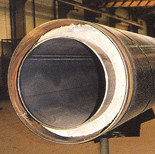 Eine weitere Variante stellt das sogenannte "Konti-Rohr-Verfahren" [FI-Lögst] dar. Hierbei handelt es sich um ein Fertigungsverfahren, bei dem der PUR-Schaum werkseitig kontinuierlich auf das rotierende Stahlmediumrohr aufgespritzt wird und die Schichtdicke in Abhängigkeit der erforderlichen Wärmedämmung leicht variiert werden kann.