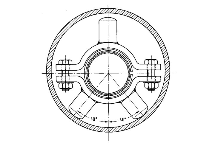 Auflagermöglichkeiten von Stahlmediumrohren bei SMR zur Aufnahme von Dehnbewegungen - Axialgleitlager [AGFW93] |