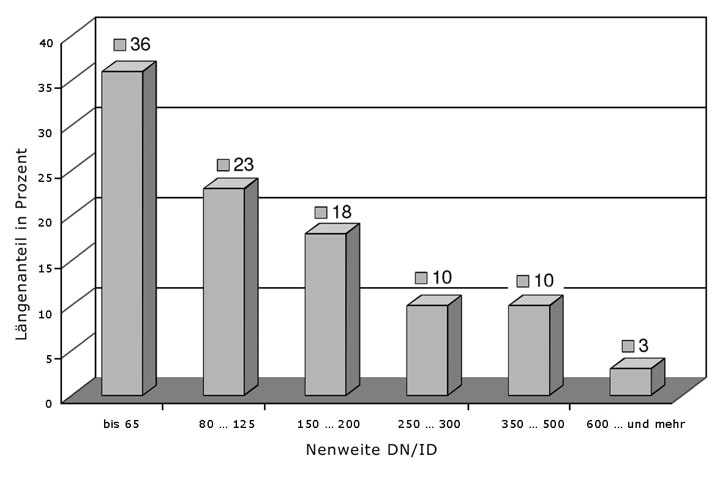 Nennweitenverteilung von Fernwärmeversorgungssystemen in der Bundesrepublik Deutschland [AGFW93] |