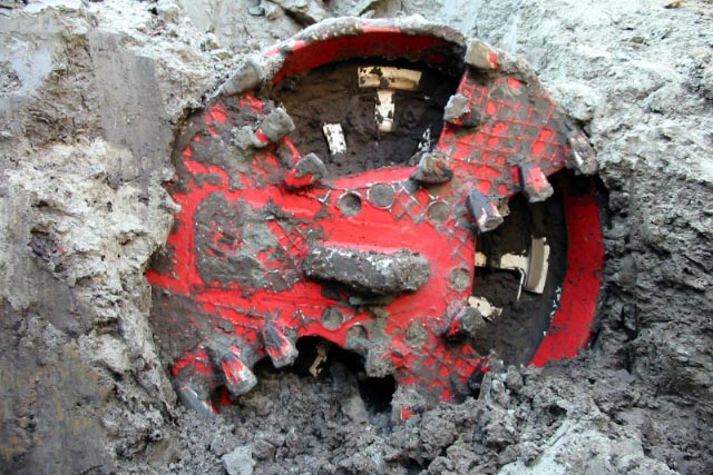 Mikrotunnelbaumaschine mit pneumatischer Förderung (Verfahren AVP [FI-Herreb]) - Bohrkopf |
