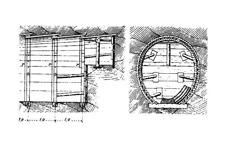 Stollenvortrieb mit Getriebezimmerung in Frankfurt a. M. um 1910 [Frühl10] |