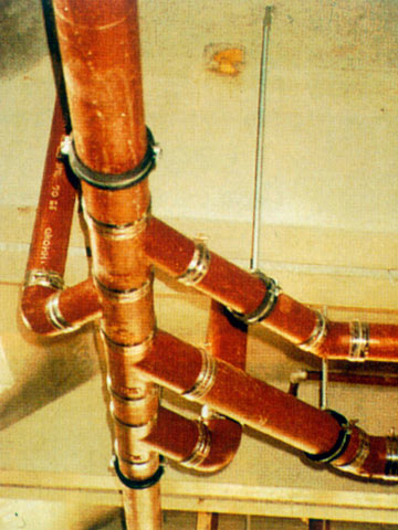 Die Sammelleitung unterscheidet sich von der Grundleitung dadurch, daß sie oberhalb oder zugänglich in einer Leitungsrinne innerhalb der tiefsten Kellersohle verlegt wird und dadurch problemlos inspiziert werden kann (Bild 1.9.1-4) (Bild 1.9.1-5) (Bild 1.9.1-6) .