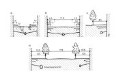 Die in dieser Norm vorgenommene Verteilung und Tiefenlage der Ver- und Entsorgungsleitungen im Straßenquerschnitt, die im wesentlichen auf der oben angeführten Praxis basierten, vermitteln (Tabelle 1.11-1) und (Bild 1.11-5) . Bei sehr breiten Gehwegen empfahl die Norm ebenfalls in diesen die Abwasserkanäle unterzubringen.