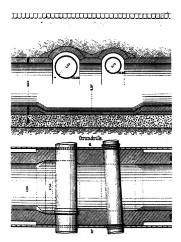 Planmäßige Rohrkreuzung in der Berliner Kanalisation um 1890 [Hobre84] |