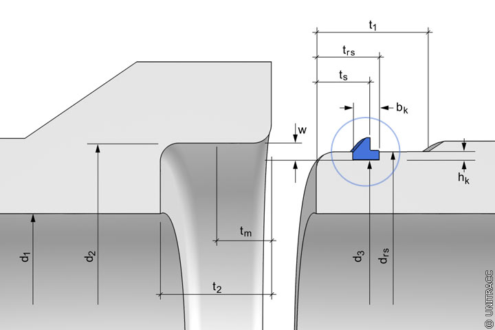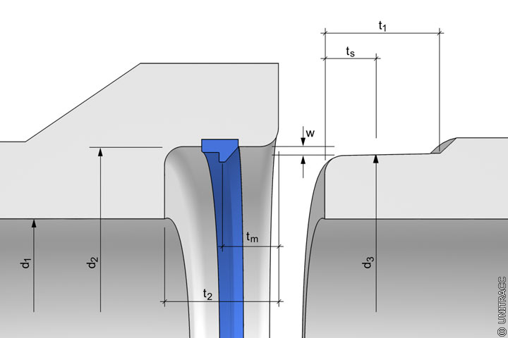 Die Wanddicke w ist abhängig von der Art des verwendeten Werkstoffs und der Herstellung, deshalb können für diese keine Maßnahmen angegeben werden. |