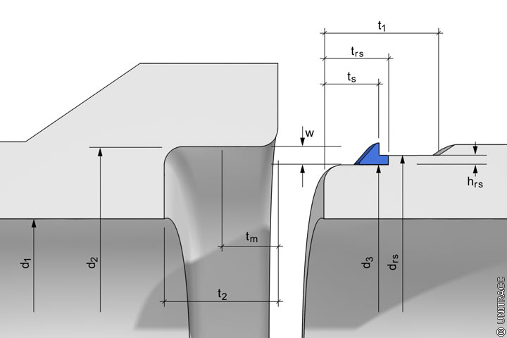 FBS-Beton- und Stahlbetonrohre: Gleitringdichtung mit Stufenausbildung (Beispiel) in Anlehnung an [FBS94]. [Quelle: visaplan GmbH] |
