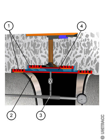 Neuentwicklung für die Abdichtung von Rohrverbindungen - Prüfbare und sanierungsfähige Dichtung für begehbare Kanäle in Anlehnung an [Patentb] [Quelle: STEIN Ingenieure GmbH] |