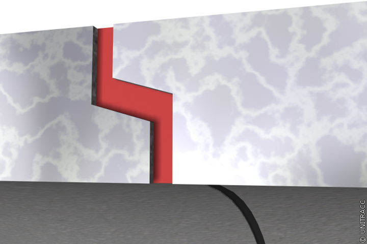 Beim Zusammenschieben wird der Dichtring, ohne seine Lage zu verändern, verpreßt und erreicht auf diese Weise seine Dichtfunktion [BDB78] . Eine Stoßfuge zwischen den Rohren von 10 mm bis max. 20 mm (Mindestmaß 5 mm nach ATV-A 139 [ATVA139:1988] ) erlaubt entsprechende Bewegungen der Rohrverbindungen bei Setzungen, Bergsenkungen u.ä..