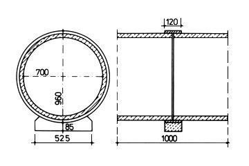 Bei größeren Rohrnennweiten und grundsätzlich bei Stahlbetonrohren mit Eiquerschnitt kam entweder ein 100 mm bis 120 mm breiter Überschiebring, der über die Stoßstelle geschoben und anschließend vermörtelt wurde (Bild 1.7.7.2.1-1) (Bild 1.7.7.2.1-10) , oder ein örtlich um die Stoßstelle hergestellter und bewehrter Betonwulst zur Anwendung. Zur Erleichterung der Dichtungsarbeiten wurde die Stoßstelle auf eine lagerbockartige Unterlage aufgelegt [Frühl10] [Braub25] .