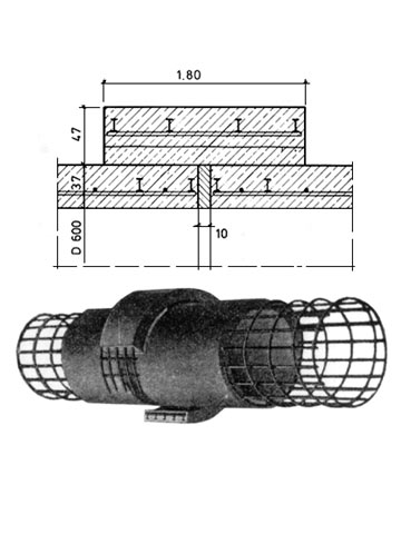 Stahlbetonrohre mit Kreisquerschnitt wurden im Nennweitenbereich bis DN 600 mit Muffen versehen, die eine Dichtung mit Zementmörtel oder Asphaltkitt erhielten (Bild 1.7.7.2.1-1) .