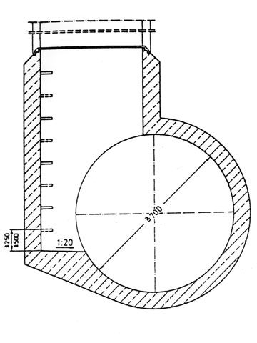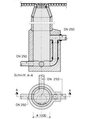 Schächte mit seitlich angeordnetem Einstieg - Tangentialschacht ohne Auftritt (Regen- oder Entlastungskanäle) [ATVA2411:1978] |