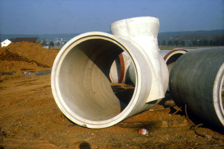 Bei Schächten für Abwasserleitungen und -kanäle mit Nennweiten ≥ DN 700 können die Schachtunterteile auch seitlich an Rohren nach DIN 4032 [DIN4032:1981/59] oder DIN 4035 [DIN4035] angeformt werden (Bild 1.8-4) (Bild 1.8-5) (Bild 1.8-6) .