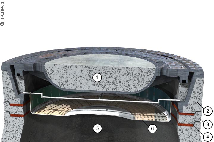 Schnitt durch eine Schachtabdeckung in Anlehnung an DIN EN 124 [DINEN124:1994] bzw. DIN 19549 [DIN19549]. [Quelle: visaplan GmbH] |