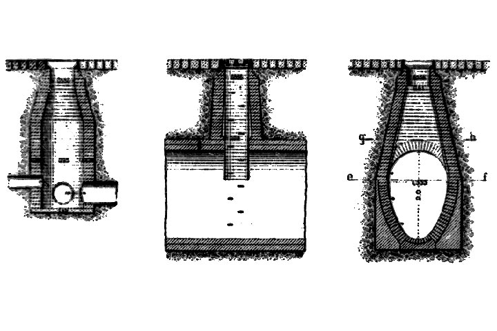 Gemauerte Einsteigschächte der Kanalisation von Berlin um 1884 [Hobre84]
