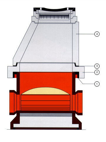 Schnitt durch einen kombinierten Schacht aus Beton- und Steinzeugelementen [FI-Stein] |