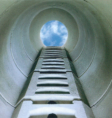 Neben den Steighilfen mit den traditionellen Steigeisen gibt es seit wenigen Jahren auch aus Beton geformte Steigleiter- bzw. Steigstufensysteme, die gleichzeitig mit der Herstellung des Schachtringes oder -konus eingeformt werden (Bild 1.8.2-1) .