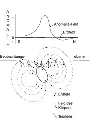 Das Magnetfeld der Erde wird an der Erdoberfläche sehr stark beeinflußt durch die obersten Schichten des Untergrundes. Im Anwendungsbereich der Ingenieurgeophysik sind dies nicht die Schichten selbst, sondern die in ihnen enthaltenen Strukturen, wie beispielsweise Eisenbestandteile, Bunker, Tanks, Träger, Rohrleitungen, Schrott, Fässer und Stahlbeton-Fundamente. Häufig sind diese Eisenteile nicht eigentlich Gegenstand der Untersuchung, können aber diesen, beispielsweise einen Hohlraum durch ihr Magnetfeld "verraten". Die Magnetik kann sehr gut zum Aufsuchen und Abgrenzen von Störkörpern eingesetzt werden, da diese sich klar von der "magnetisch ruhigen" Umgebung abheben.