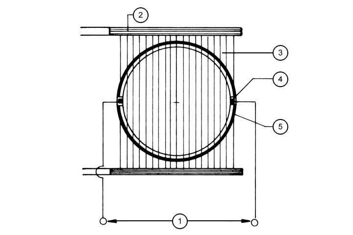 MID-Meßwertaufnehmer beruhen auf der elektrischen Leitfähigkeit des Abwassers. Grundlage des Meßprinzips ist das Faraday´sche Induktionsgesetz: in einem Leiter, der senkrecht zu den Feldlinien eines magnetischen Wechselfeldes angeordnet ist, wird eine Spannung induziert. Der gleiche Effekt tritt auf, wenn der Leiter (in diesem Fall der Abwasserstrom) durch ein statisches Magnetfeld bewegt wird: auch in diesem Fall tritt eine Spannung senkrecht zu den magnetischen Feldlinien und zu der Bewegungsrichtung des Leiters auf. Diese Spannung, welche von zwei Elektroden aufgenommen werden kann (Bild 4.4.2.2.1.1-1) , ist sowohl bei laminaren als auch turbulenten Strömungen der mittleren Fließgeschwindigkeit vm im Meßquerschnitt in einer linearen Beziehung direkt proportional [VDIVDE2641] [Bonfi87] .
