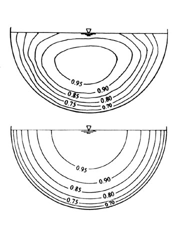 Geschwindigkeitsverteilung im teilgefüllten Kreisrohr [Valen94]