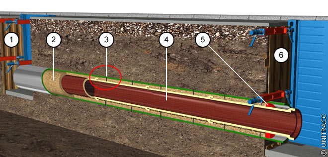 Phase 1: Vortrieb eines Mantelrohres (entspricht einem Schutzrohr im Sinne ATV-A 161 bzw. DVGW-GW 312)