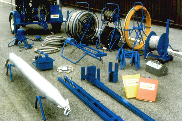 Dynamisches Rohrberstverfahren in Kombination mit dem Einziehen von Einzelrohren [FI-Tracta] - Einziehen der Zugkette in die Einzelrohre |