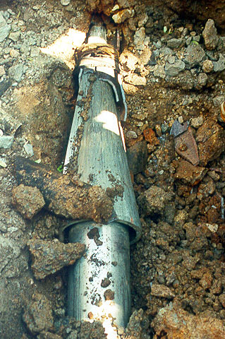 - Schmierung des Rohrstranges und Fixierung der Bruchstücke mit einer Tonzement-Suspension