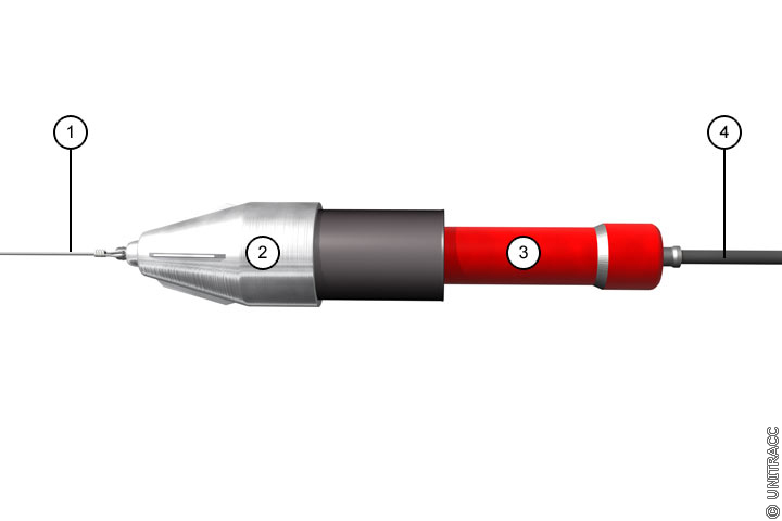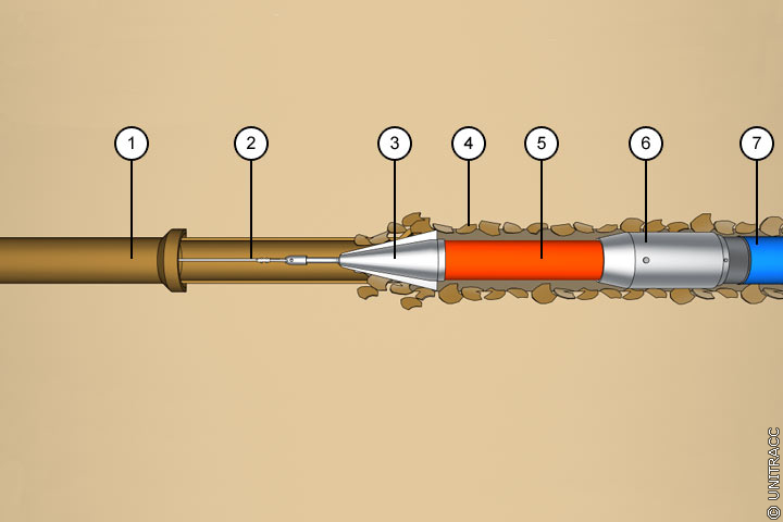 Dynamisch arbeitende Berstkörper in Anlehnung an [FI-Tracta] - Berstkörper mit Aufweitungskörper vorn (inkl. Schneidmesser) [Quelle: STEIN Ingenieure GmbH] |