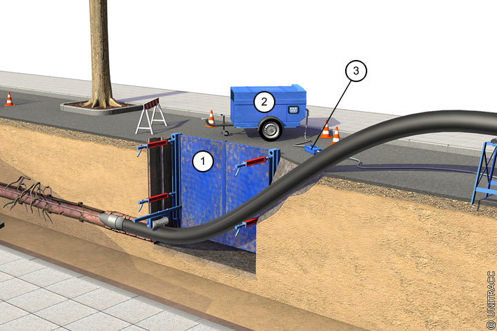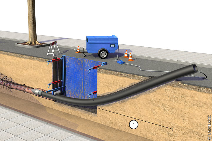 Beim Einbau der neuen Leitung unmittelbar hinter dem Verdrängungskörper finden folgende Verfahren Anwendung: