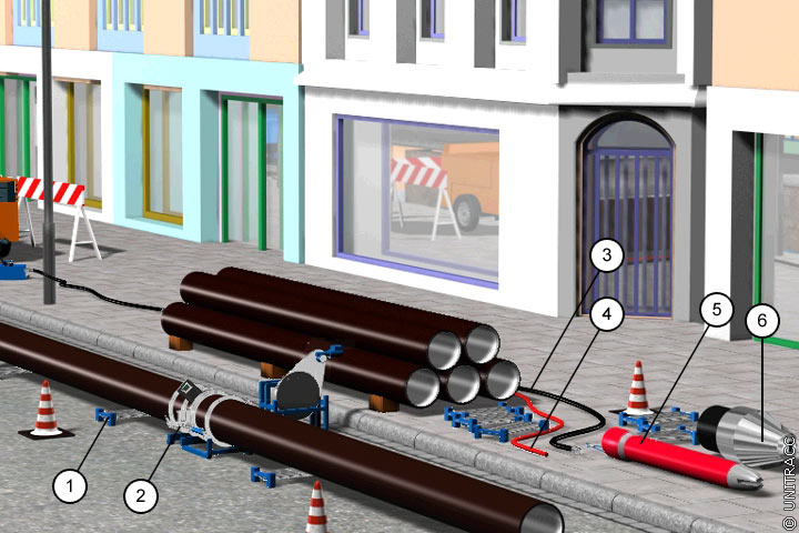 Dynamisches Berstverfahren in Kombination mit dem Einziehen eines Rohrstranges [Quelle: STEIN Ingenieure GmbH] - Einziehen des Rohrstranges |