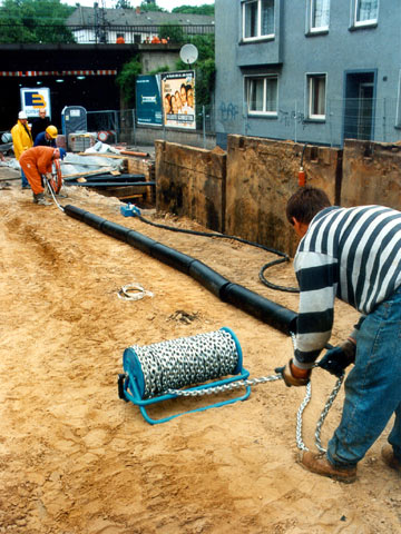- Einziehen eines Rohrstranges aus PE-HD nach DIN 8074/75 [DIN8074b] [DIN8075:1999] und DIN 19537 [DIN19537a] (in Einzelfällen auch aus PVC-U)