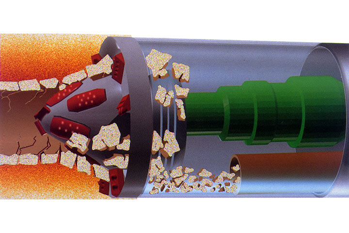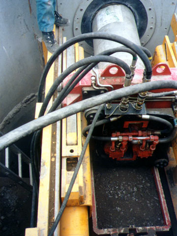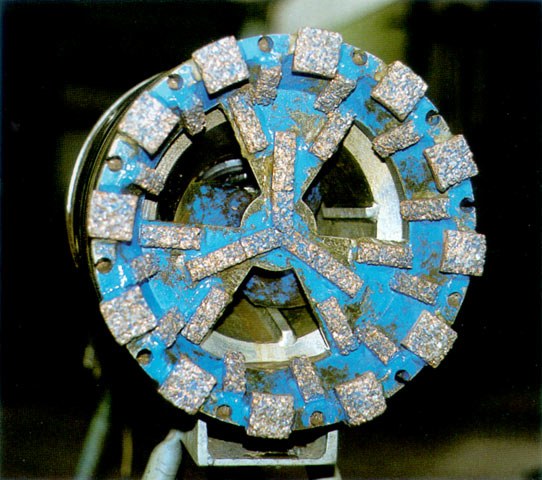 "AVP-Crush-Lining" [FI-Herreb] - Bohrkopf beim Abbau eines Betonrohres |