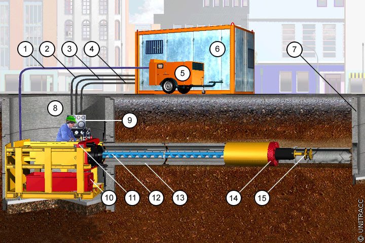 Unbemannt arbeitender Rohrvortrieb (Überfahren)