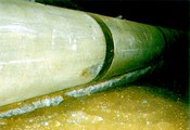 Neben dem Überfahren mit unbemannt arbeitenden Rohrvortrieben besteht auch die Möglichkeit, für diese Zwecke Horizontal-Spülbohranlagen mit Zugkräften von mindestens 100 kN einzusetzen [Stein88c] [ATVA125:1996] [Kleis96a] . In diesem Fall wird der vorhandene Altkanal als Pilotbohrung und damit zur Aufnahme des Bohrgestänges genutzt. Das Überfahren des Altkanals wird durch das Zurückziehen des Bohrgestänges mit einem dahinter geschalteten speziellen Aufweitungskopf realisiert. Dieser ist in der Lage, den Altkanal abzutragen und die neue Leitung in Form eines Rohrstranges nachzuziehen. Die Bruchstücke des Altkanals und der abgebaute Boden werden mit der Bohr- und Spülflüssigkeit durch den Altkanal zum Einsteig- oder Zielschacht transportiert. Mit dieser Methode wurden bereits Kanäle mit Haltungslängen von über 360 m in einem Arbeitsgang erneuert.