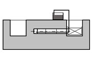 Die Abmessungen der Start- und Zielbaugruben betragen beim Vortrieb von Rohren ≤ DN 800 je nach Maschinentyp und Baulänge der Vortriebsrohre zwischen 2,0 und 3,5 m. Es empfiehlt sich, die Anordnung der Baugruben im Bereich vorhandener Einsteigschächte vorzunehmen (Bild 5.4.3.4-21) . Diese werden beim Absenken der Baugruben entfernt und nach Fertigstellung der Baumaßnahme wiederhergestellt. Daher besteht auch die Möglichkeit, die Start- und Zielbaugruben bei entsprechenden Abmessungen in die Nutzung als Einsteigschächte mit einzubeziehen. Aus Kostengründen bietet es sich an, von einer Startbaugrube aus möglichst zwei Haltungen aufzufahren.