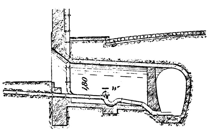Abwasserkanal mit Versorgungsleitungen in Paris (19. Jahrhundert) [Frühl10] - Verlegung der Hausanschlüsse in einem begehbaren Gangkanal |