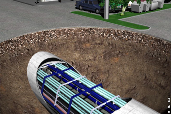 - Bei Herstellung des Leitungsganges in geschlossener Bauweise in einem zweiten Horizont unterhalb der vorhandenen Leitungen können diese bis zur Fertigstellung des neuen Systems in Betrieb bleiben. Damit werden Ver- und Entsorgungsengpässe minimiert.