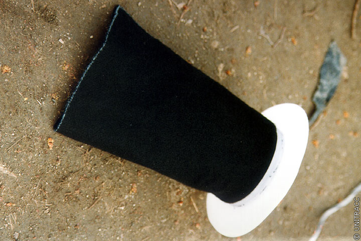 Im vorliegenden Anwendungsfall bietet sich bei Kanälen ab DN 200 und Anschlußkanälen ≥ DN 100 die geschlossene Bauweise unter Anwendung z.B. einer speziell für das TROLINING®-System entwickelten Hutmanschettentechnik an (Abschnitt 5.2.3.2.3) . Die Krempe besteht aus PE-HD und wird mit Hilfe einer stoffschlüssigen Heizwendelschweißung an den bestehenden Inliner angeschweißt (Bild 5.3.2.4.2.6.2-1) [Kölke96] [Voigt95] .