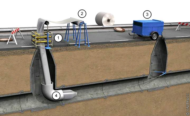 Arbeitsschritte beim Noppenschlauchverfahren [Quelle: STEIN Ingenieure GmbH] - Einzug des Noppenschlauches |