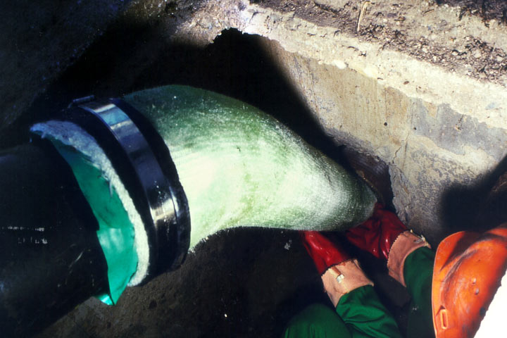 Überschußharz soll in Risse und/oder undichte Muffen eindringen und somit die Ausbildung eines kraftschlüssigen Verbundes des Inliners mit dem Anschlußkanal unterstützen [NN97c] .