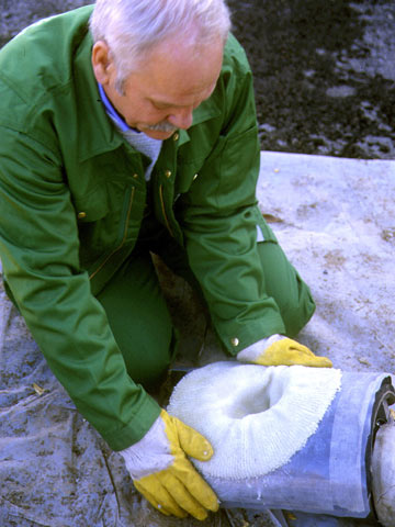 KM-Houseliner Arbeitsschritte [FI-KMG] - Einziehen des Glasfaserstrickschlauches in den Preliner |