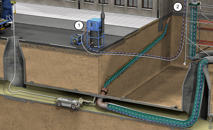 KM-Houseliner Arbeitsschritte [FI-KMG] - Invertieren des Houseliners aus dem Einsteigschacht heraus |