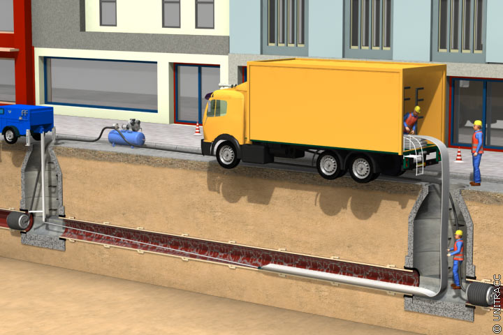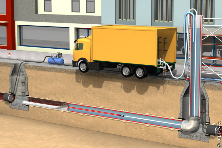 KM-Inliner-Verfahren [FI-KMG] - Einziehen des Trägerschlauches aus dem Kühlwagen |